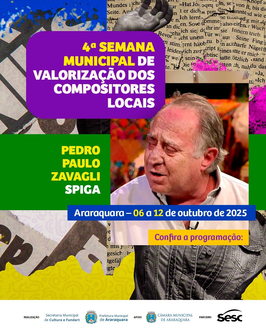 Criada para valorizar a produção autoral e fortalecer a música como patrimônio vivo, a Semana é uma realização da Secretaria Municipal de Cultura e Fundart, em parceria com a Câmara Municipal e o Sesc Araraquara.