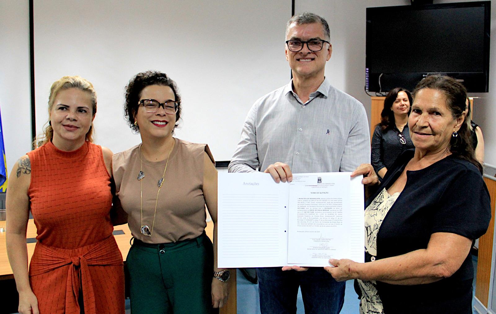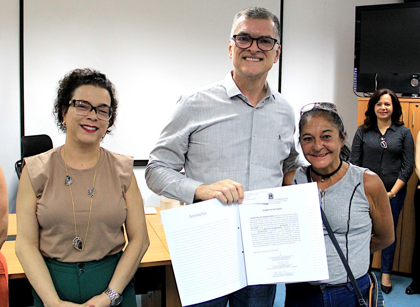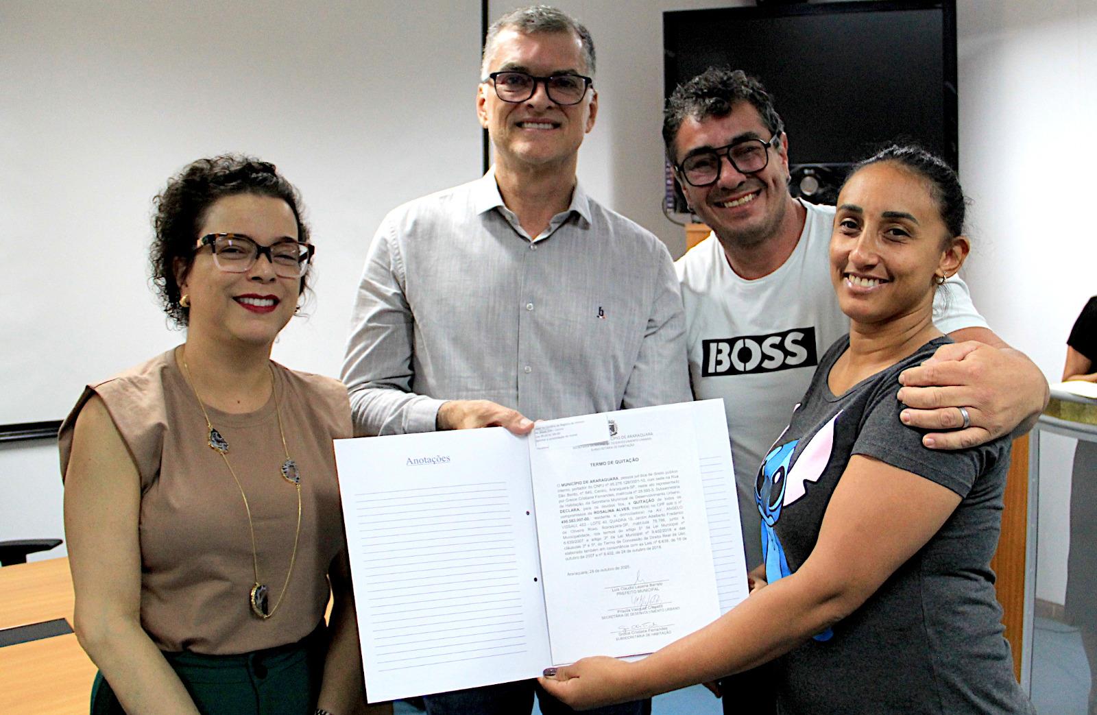 Em uma manhã marcada por reconhecimento e celebração coletiva, a Prefeitura Municipal de Araraquara entregou oficialmente os registros e termos de quitação das moradias do Jardim Adalberto Roxo, garantindo a 78 famílias o direito pleno às casas que elas mesmas ajudaram a erguer em sistema de mutirão. A cerimônia aconteceu nesta sexta-feira (14), no 6º andar da Prefeitura.