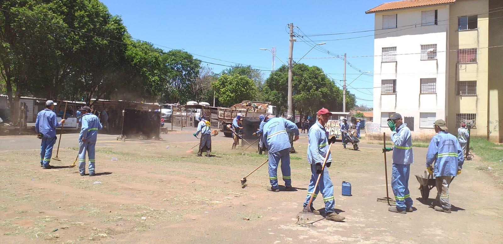 Foram realizados serviços de limpeza de áreas públicas, poda de árvores, nivelamento de vias, retirada de entulhos e construções irregulares, além de orientações aos moradores sobre descarte correto de resíduos, cuidado com os animais e preservação dos espaços comuns.