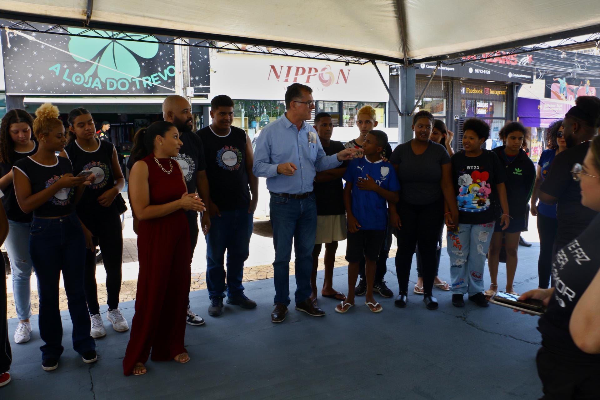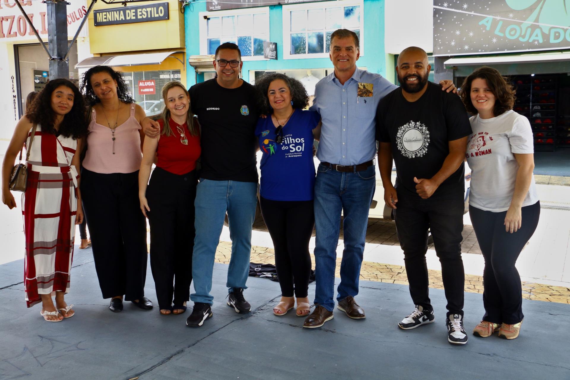 O prefeito Dr. Lapena esteve no local, acompanhando a programação ao lado da secretária de Direitos Humanos e Cidadania, Jéssyca Alencar; da secretária de Comunicação, Paula Cardoso; do chefe de gabinete, Pedro Monteiro; e do vereador Marcelinho, representando a Câmara Municipal. Durante a visita, assistiu às apresentações de música e dança do grupo Filhos do Sol, que movimentaram o palco montado na praça e atraíram moradores da região.