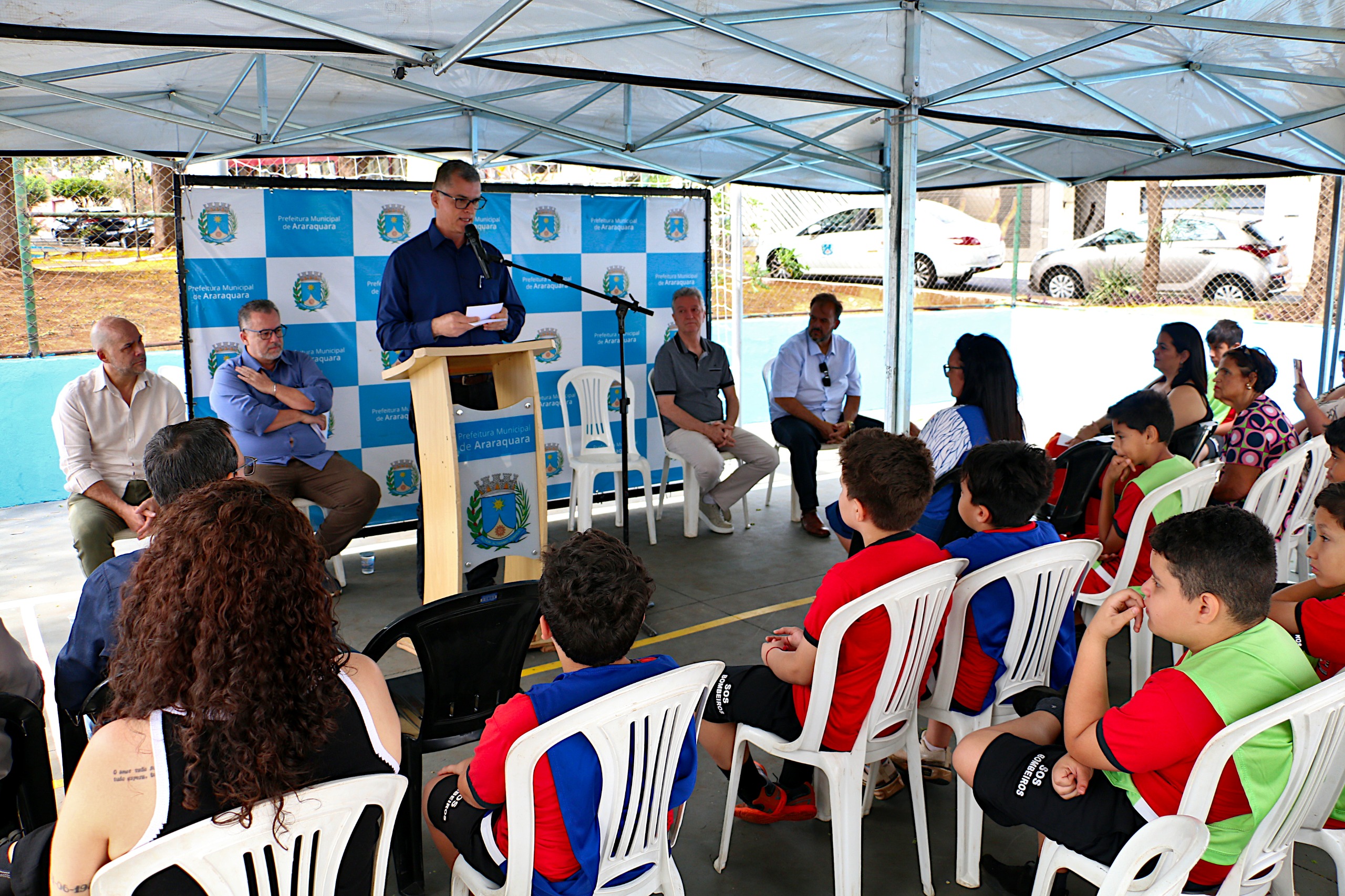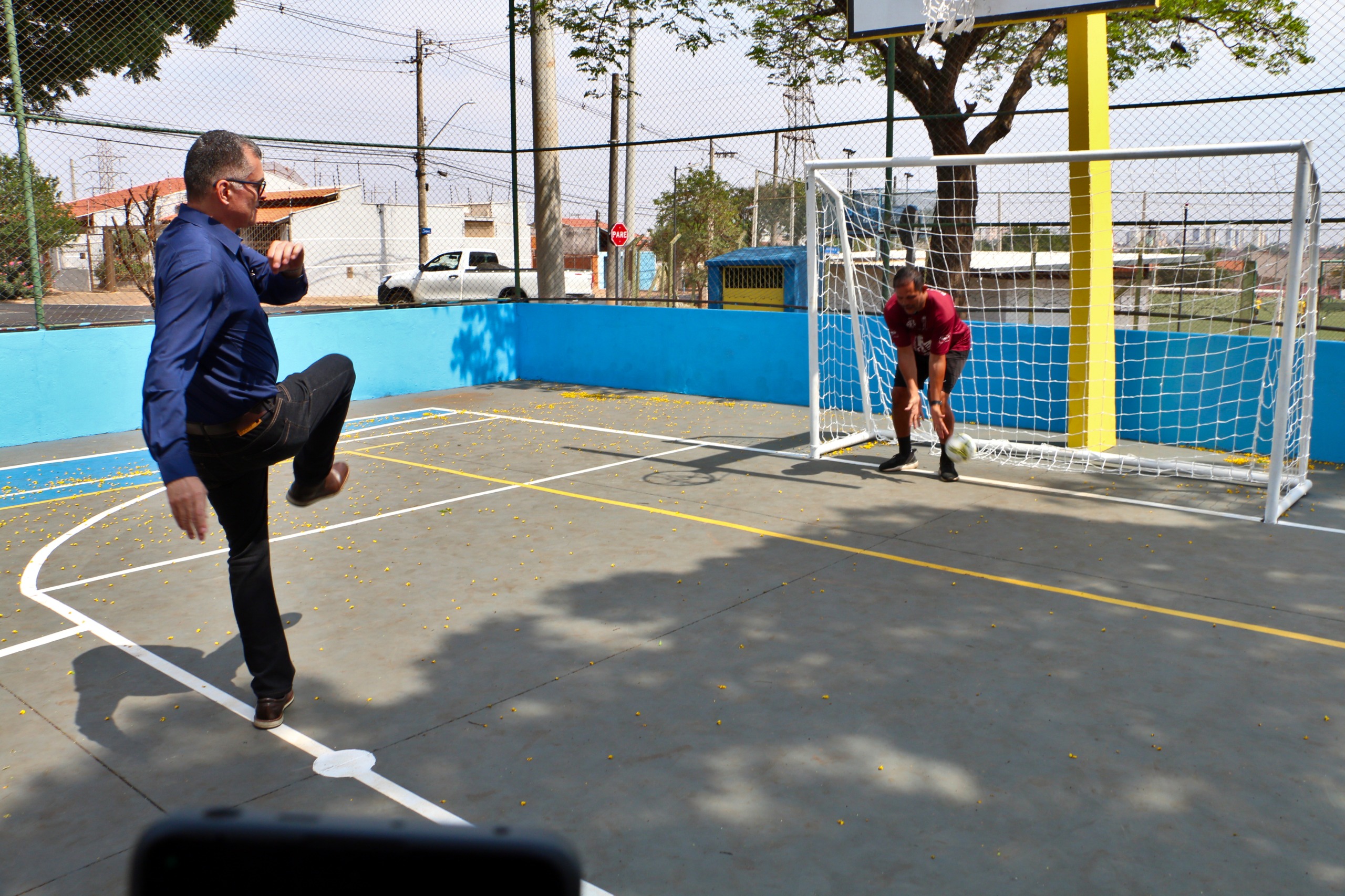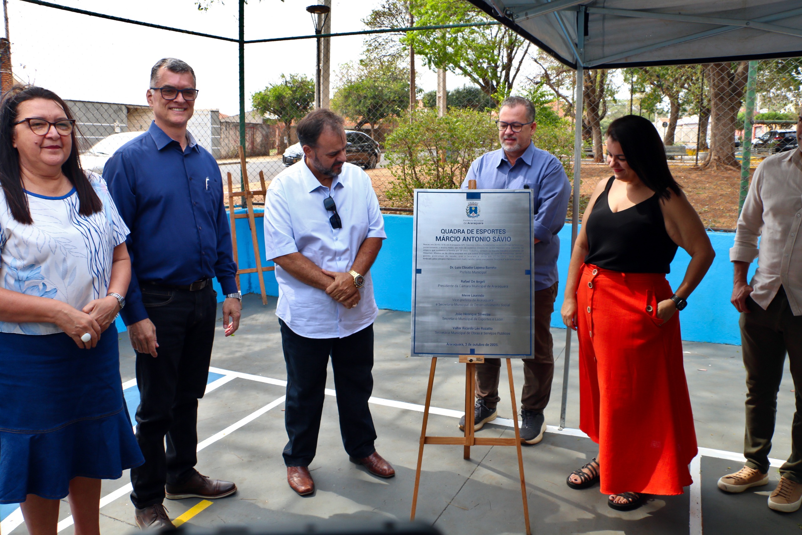 A cerimônia teve seu ponto alto no descerramento da placa oficial que dá nome à quadra, momento em que autoridades e familiares juntos eternizaram a homenagem. Em seguida, as crianças das Escolinhas Municipais de Esportes protagonizaram uma partida, símbolo vivo da integração e da continuidade da vida que pulsa naquele espaço.